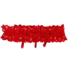 De band is gemaakt van rood elastisch kant en is bezet met 3 paar strikjes.
