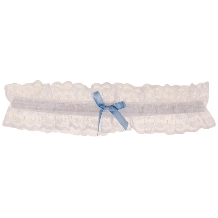 Kousenband Wit Kant met Lichtblauw Strikje