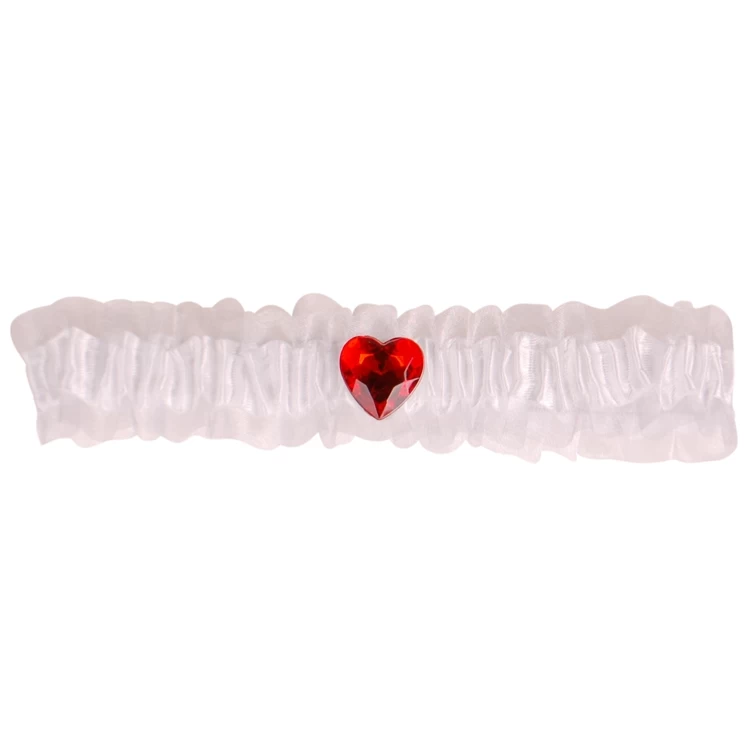 De band is gemaakt van wit elastisch kant met een rood strass steentje in de vorm van een hartje.
