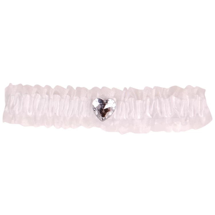 De band is gemaakt van wit elastisch kant met een strass steentje in de vorm van een hartje.
