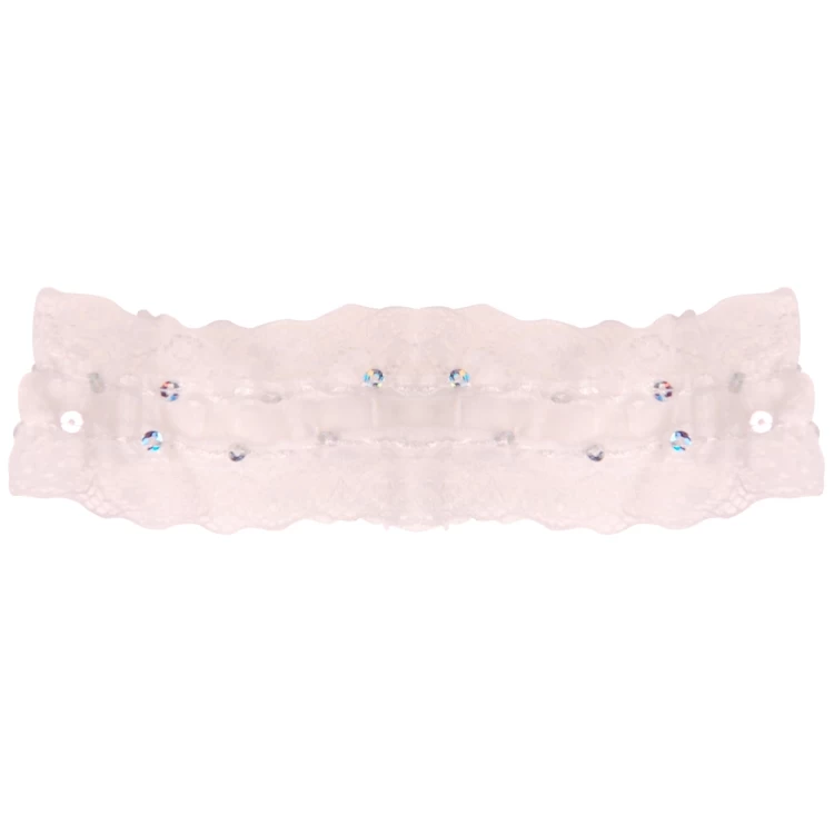 De band is gemaakt van wit elastisch kant met zilverkleurige pailletten.