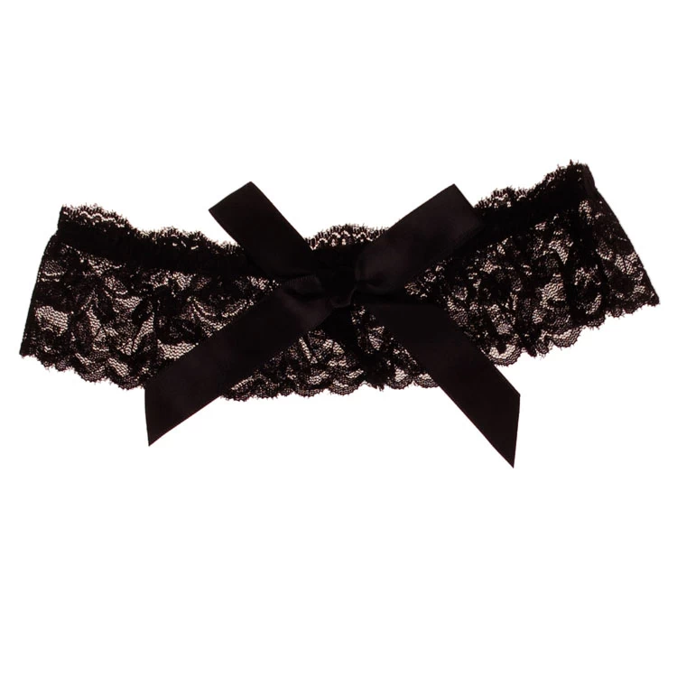 Kousenband Zwart elastisch kant met Zwarte Strik
