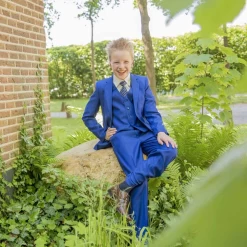 Het jongenskostuum kreukt bijna niet tijdens het dragen, kan in de wasmachine op 30 graden gewassen worden en kan op een lage stand gestreken worden.