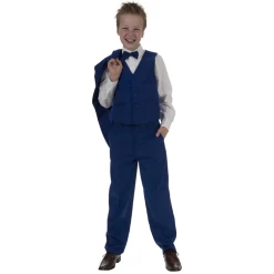 Dit mooie helderblauwe kinderkostuum is zeer netjes afgewerkt en van een goede zware kwaliteit.