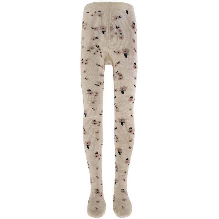 Meisjesmaillot lichtbeige met Roze Bloemetjes.