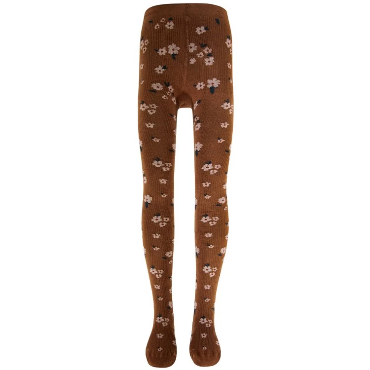 Meisjesmaillot Oranjebruin/Toffee kleur met Bloemetjes.