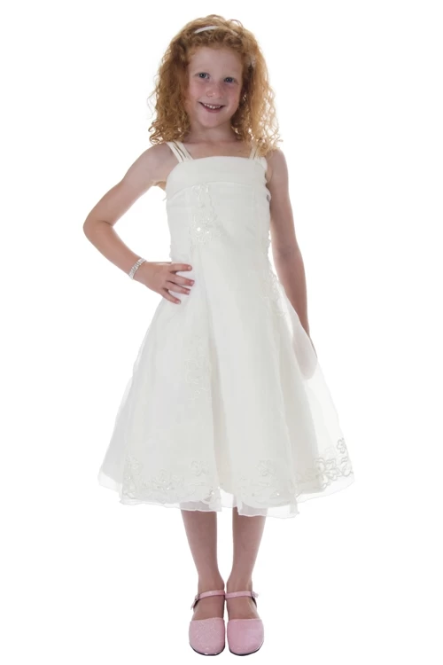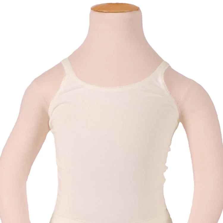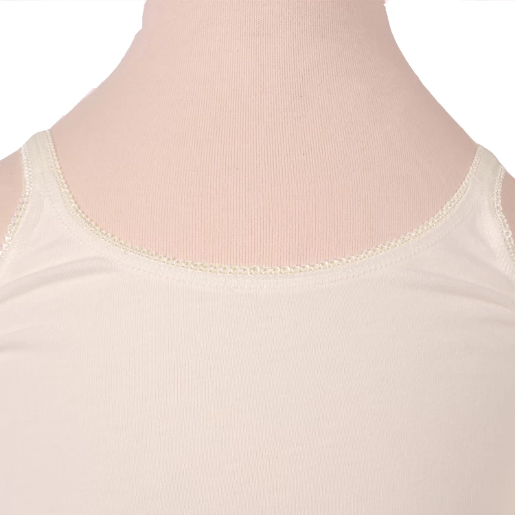 Dit ivoorkleurig hemdje is afgewerkt met een mooi sierrandje en valt netjes weg onder een meisjesjurk.