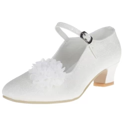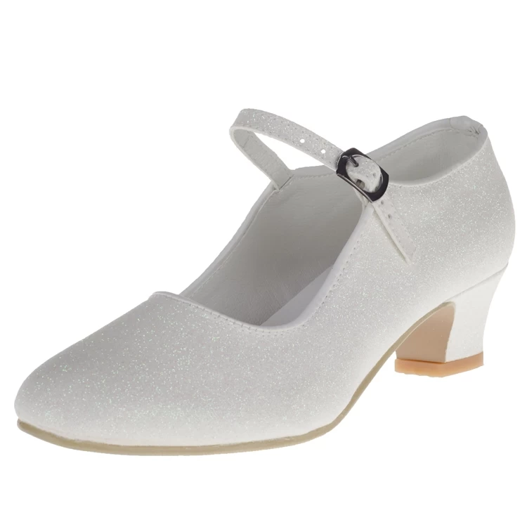 Deze ivoorkleurige schoenen zijn bedekt met glittertjes.