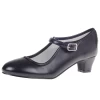 Deze gladde meisjesschoen heeft een sleehakje.