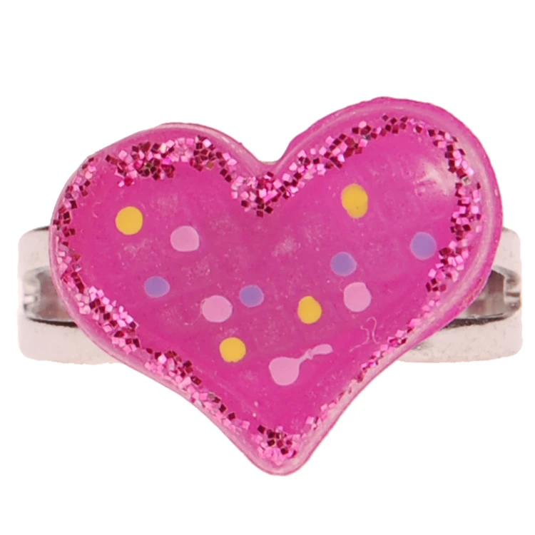 Op het hartje zitten fuchsia kleurige glittertjes.
