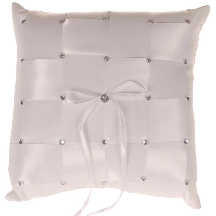 Op de hoeken van de banen is het ringkussen afgezet met strass steentjes.