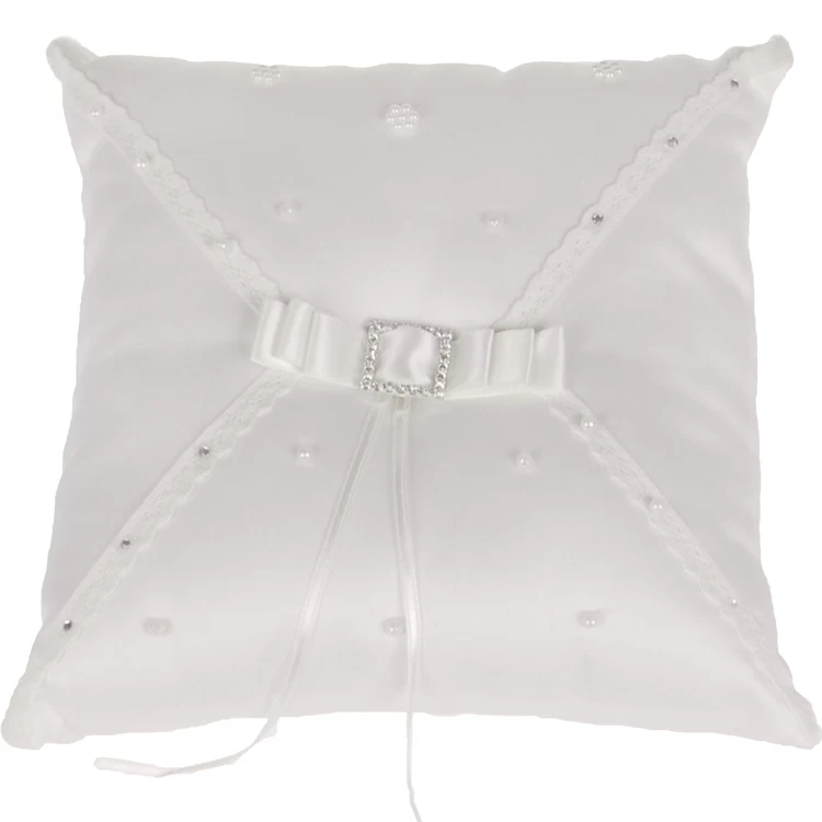 Aan het kussen zitten 2 linten waaraan de trouwringen kunnen worden vastgemaakt.