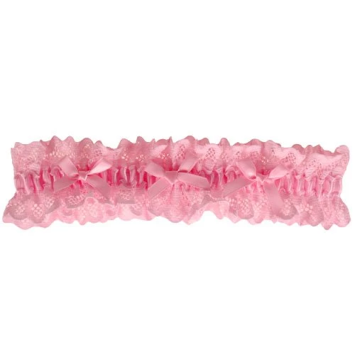 Een leuke roze kousenband grote maat met kant.