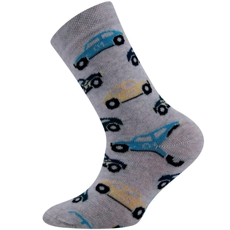 Het eerste paar is grijs van kleur en heeft diverse gekleurde sportauto’s.