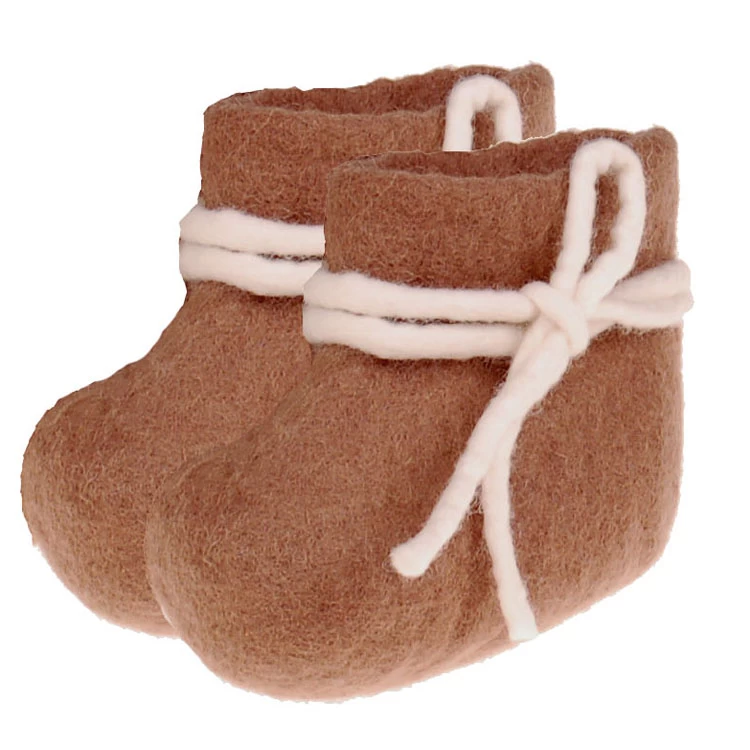 Vilten babyslofjes Bruin met een wit touwtje – 9cm