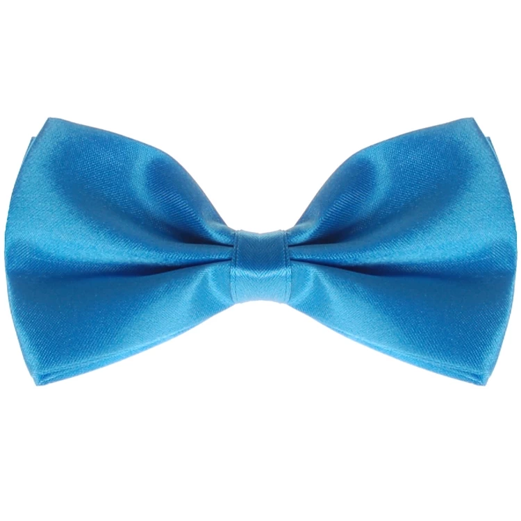 Deze strik is gemaakt van een turquoise kleurige satijnachtige stof.